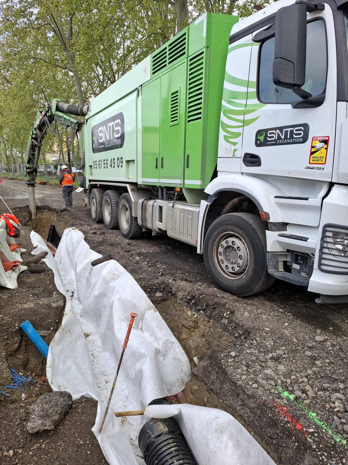 Des travaux de création et de rénovation du réseau pluvial sont actuellement en cours rue de Londres afin d’améliorer la collecte et l’évacuation des eaux de pluie 🌧️. Le terrassement est réalisé à l’aide d’une aspiratrice excavatrice 🚛, une technique douce et précise permettant d’extraire les matériaux par aspiration. Cette méthode limite les interventions mécaniques et permet de travailler au plus près des réseaux existants (eau 💧, électricité ⚡, télécommunications 📡) sans risque d’endommagement. L’utilisation de cette technique permet également de préserver l’intégralité des racines des arbres 🌳, contribuant ainsi à la protection de l’environnement et du patrimoine végétal 🌱 de la rue. Une fois la tranchée pluviale réalisée, les canalisations de réseau pluvial sont posées et raccordées, puis la tranchée est remblayée et compactée . Le compactage est une étape essentielle pour garantir la stabilité du sol, éviter tout affaissement futur et assurer la durabilité des ouvrages 🚧.