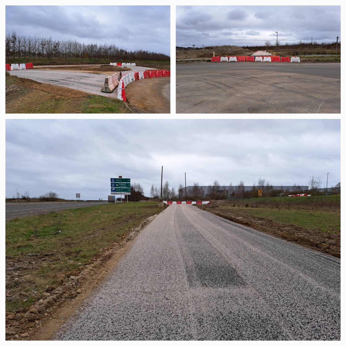 Mise en oeuvre d'une couche de grave bitume pour le futur accès dans la zone pendant la période des travaux...