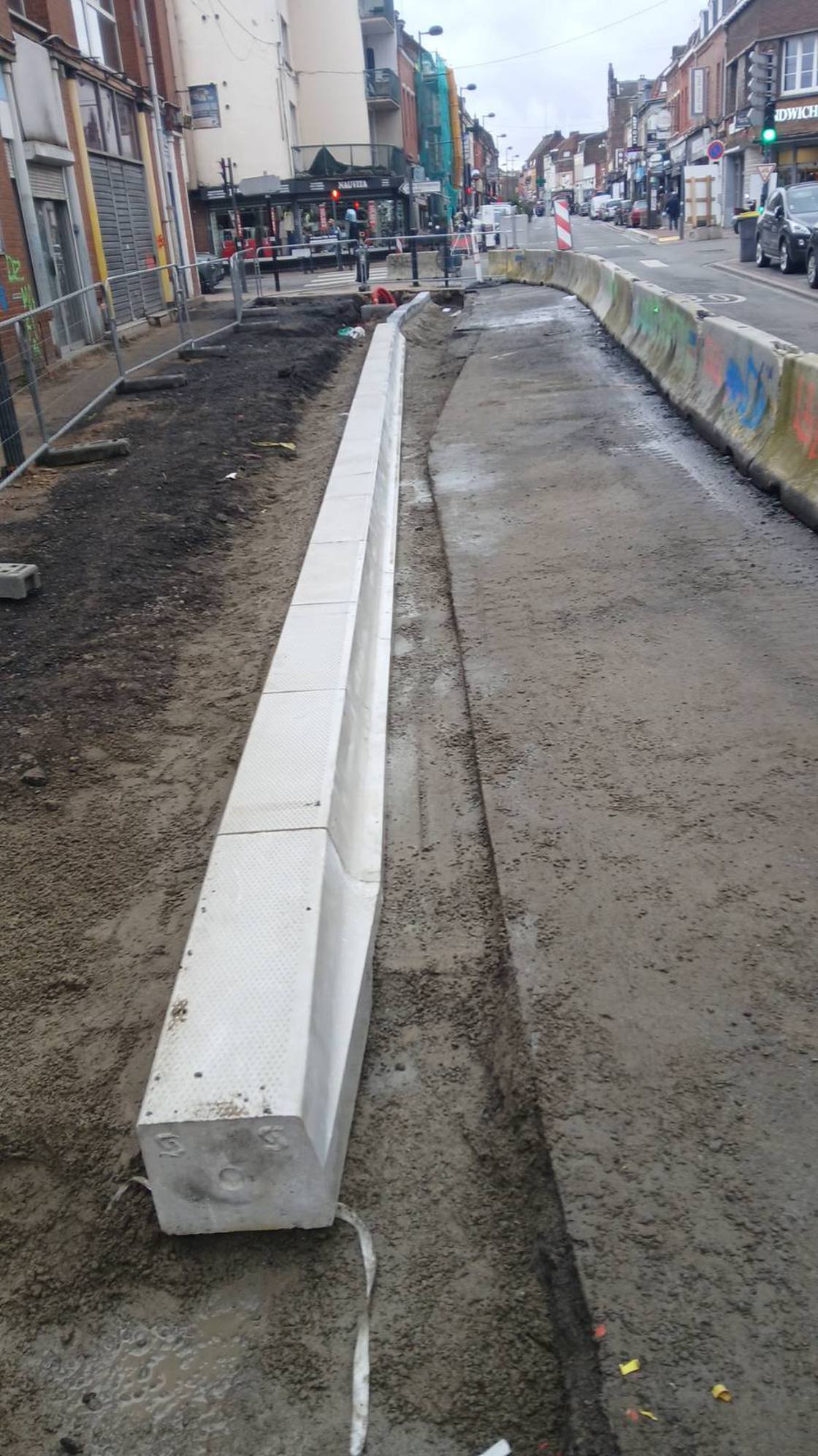 Depuis le lancement des travaux, plusieurs opérations structurantes ont déjà été réalisées. Les équipes ont procédé à la dépose des pavés existants, suivie d’un tri minutieux afin de permettre leur réemploi dans les futurs aménagements. Les trottoirs ont ensuite fait l’objet d’un terrassement complet, indispensable pour accueillir les nouveaux réseaux et les futurs revêtements. Les interventions techniques se sont poursuivies avec la pose des fourreaux, notamment pour les réseaux télécom. Enfin, un cap symbolique dans la transformation de la rue a été franchi : la pose des bordures a officiellement débuté le vendredi 13 février. Les premières bordures du quai de bus ainsi que les éléments en granit ont commencé à être mis en place, dessinant progressivement les contours du futur aménagement.
