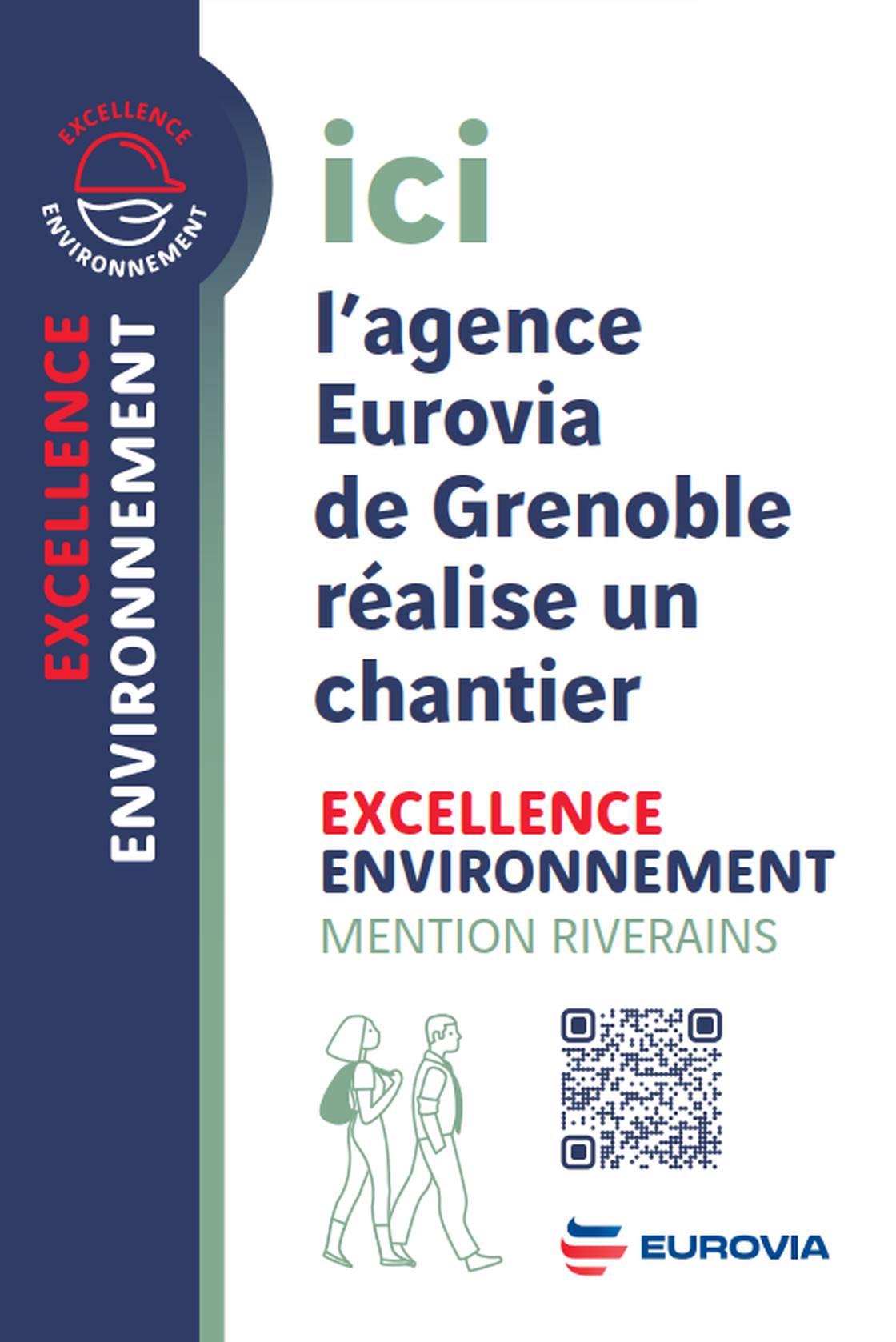 En 2015, Eurovia a créé le label "Excellence Environnement" qui s'inscrit dans une continuité de politique environnementale de réduire les impacts environnementaux de ses activités et protéger le milieu naturel. Par le biais de ce label, les équipes d'Eurovia EUROVIA s'attache à cultiver l'excellence sur les 5 composantes environnementales suivantes : • Gestion des eaux et du sol • Prise en compte des riverains • Diminution des gaz à effet de serre • Valorisation et prise en compte des déchets • Préservation de la biodiversité En plus de ces cinq critères communs indispensables à l'obtention du label Excellence Environnement, chaque chantier reçoit une mention spéciale pour la gestion exemplaire d'une ou plusieurs composantes citées. C'est la mention "Prise en compte des riverains" qui a été retenu pour le chantier d'Aménagement de la Chronovélo à Fontaine. Depuis la création du label, c'est la deuxième réalisation de l'agence d'Eurovia Grenoble, cela montre l'engagement que tient notre agence vis-à-vis de l'environnement et du voisinage de ses chantiers.