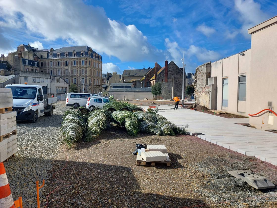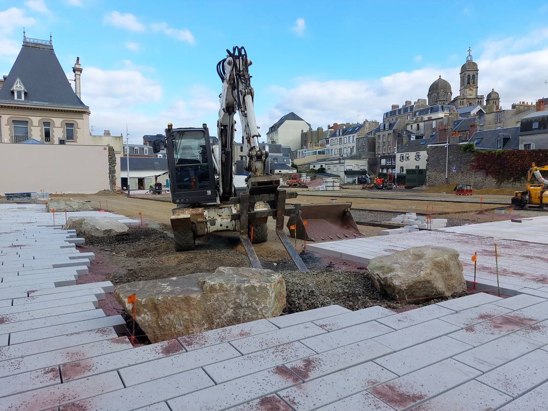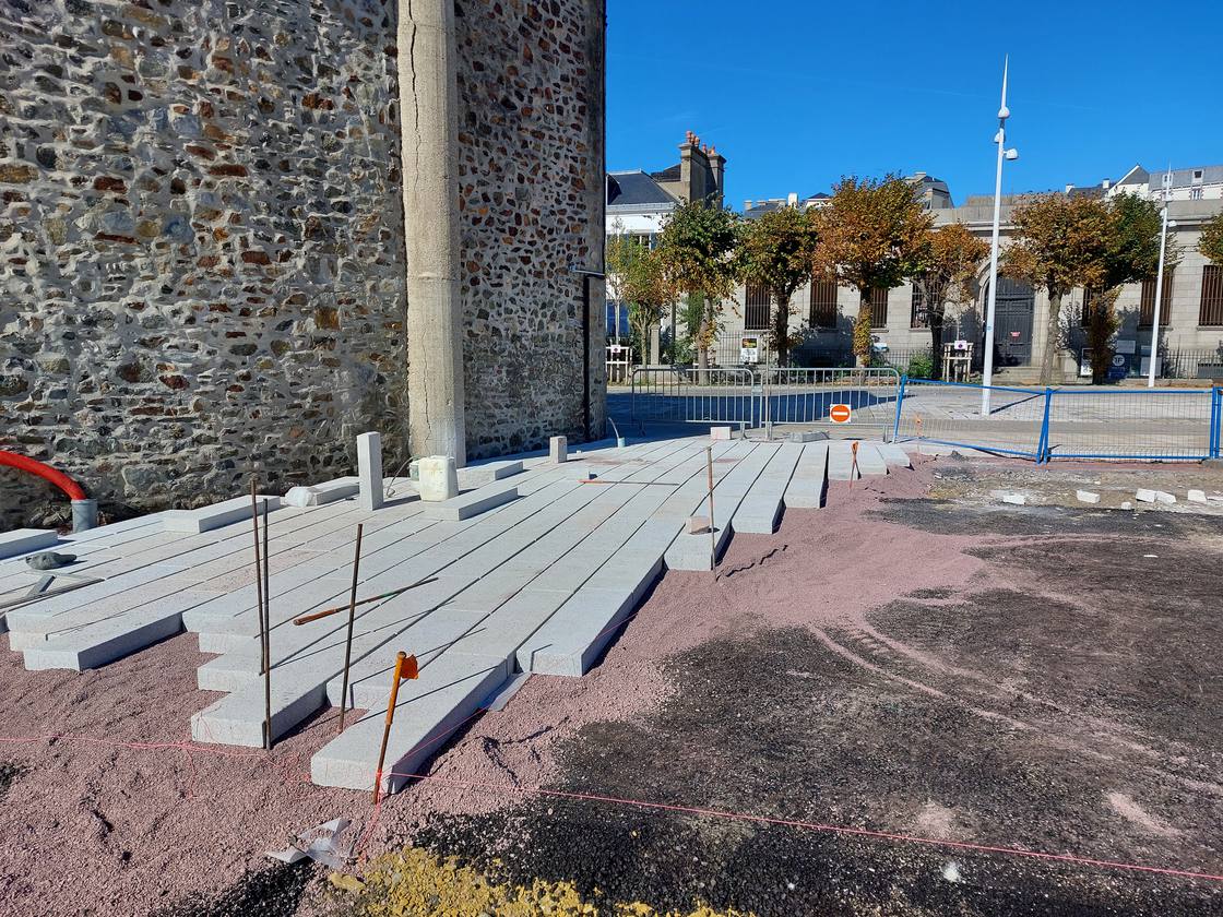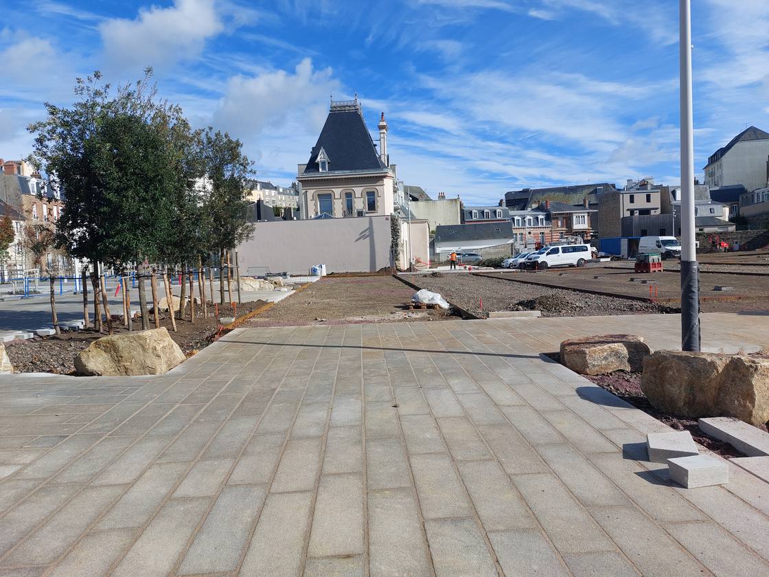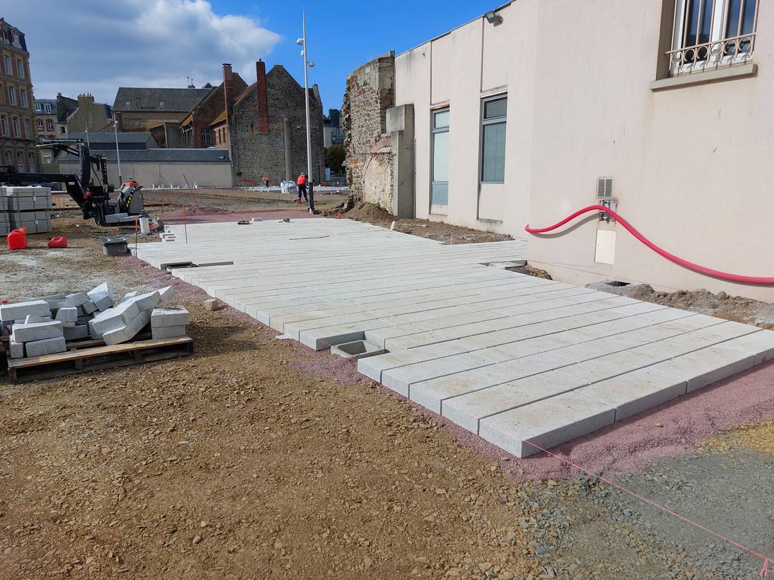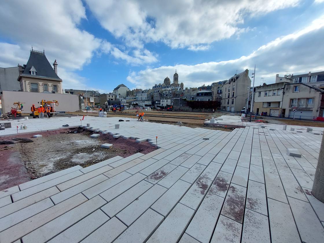- Pose du dallage devant les commerces de la Place du Général de Gaulle