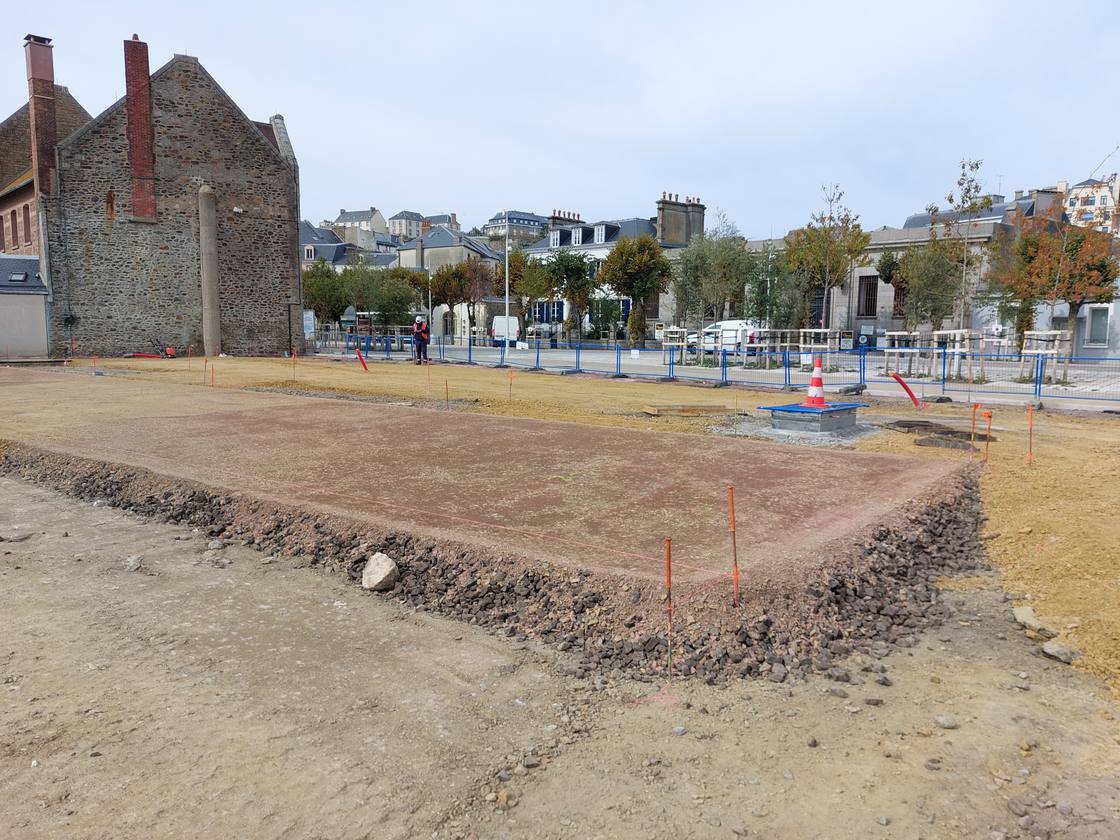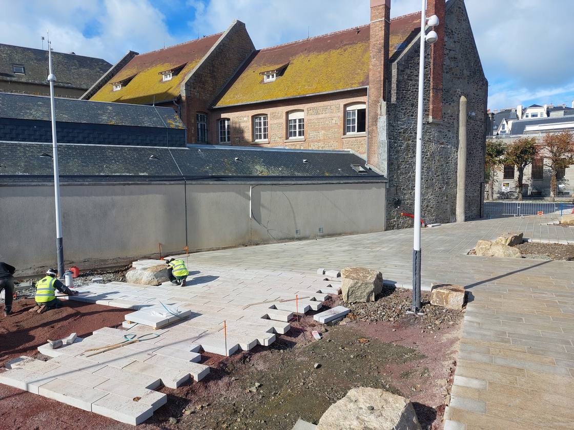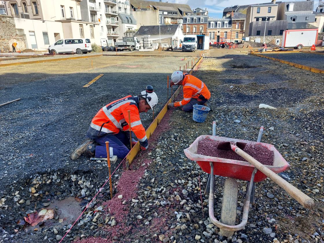 - Démarrage de la pose des pavés chevrons sur la voirie.