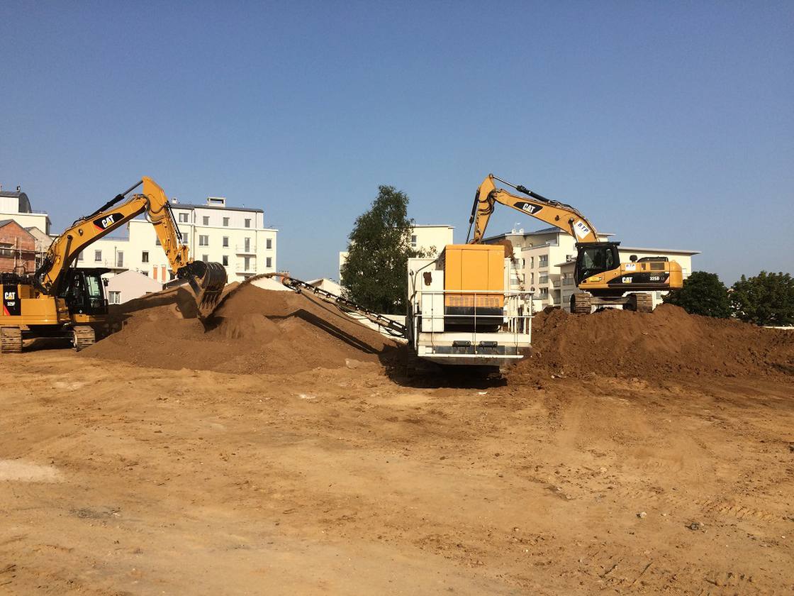 Depuis plusieurs années, EUROVIA s’est engagé dans une démarche volontariste d’économies des ressources naturelles à travers plusieurs axes : - Favorisation de la valorisation des matériaux sur site - Recyclage de matériaux de démolition - Préservation des ressources naturelles Dans le cadre de l’application de cette politique environnementale et afin de s’inscrire dans une démarche éco responsable, nous avons mis en place un procédé de retraitement des matériaux de déblai issus du chantier. A cette fin, nous avons analysé les terres excavées afin de s’assurer de leur aptitude à être réutilisée, puis nous avons implanté une installation de traitement mobile qui permet de cribler puis de traiter à la chaux ces terres. Une fois criblé et traité, les matériaux obtenus sont classifiés GTR puis réutilisés, entre autre, pour les remblais d’assainissement. Ainsi, nous limitons les flux de matériaux générateurs de pollution au CO², les risques d’accidents de circulation et l’épuisement des ressources naturelles en matériaux.